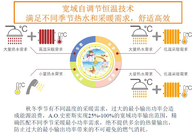 特有的電子比例閥帶來寬域線性功率調(diào)節(jié)范圍,精確匹配不同使用習(xí)慣和不同環(huán)境溫度下采暖熱需求,節(jié)能高效