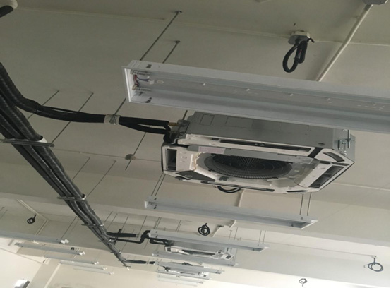 施工內(nèi)容:室內(nèi)機(jī)96臺(tái)共1106.7KW, 室外機(jī)共10套931.8KW。全新風(fēng)處理機(jī)4套。